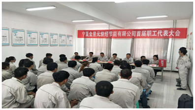 2018年5月31日,經(jīng)固原市總工會(huì)、金昱元集團(tuán)公司工會(huì)同意,金昱元廣拓能源有限公司工會(huì)委員會(huì)根據(jù)《中國(guó)工會(huì)章程》和《工會(huì)基層組織選舉工作條例》,按照民主程序,組織寧夏金昱元炔烴節(jié)能有限公司召開(kāi)了首屆職工代表大會(huì),選舉產(chǎn)生了首屆基層工會(huì)委員會(huì)委員和工會(huì)主席。
