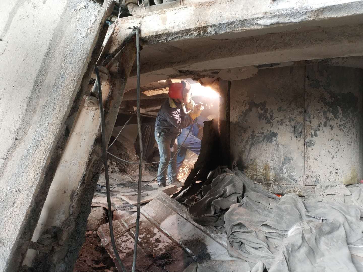 維修人員正頂著爐內(nèi)高溫,對電極本體進(jìn)行檢查,并修復(fù)爐內(nèi)漏點。