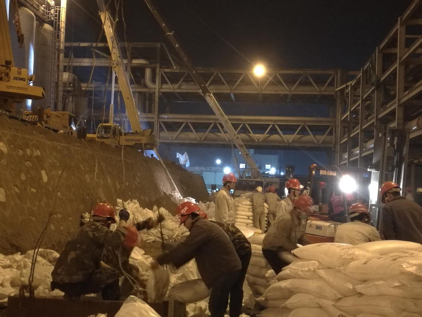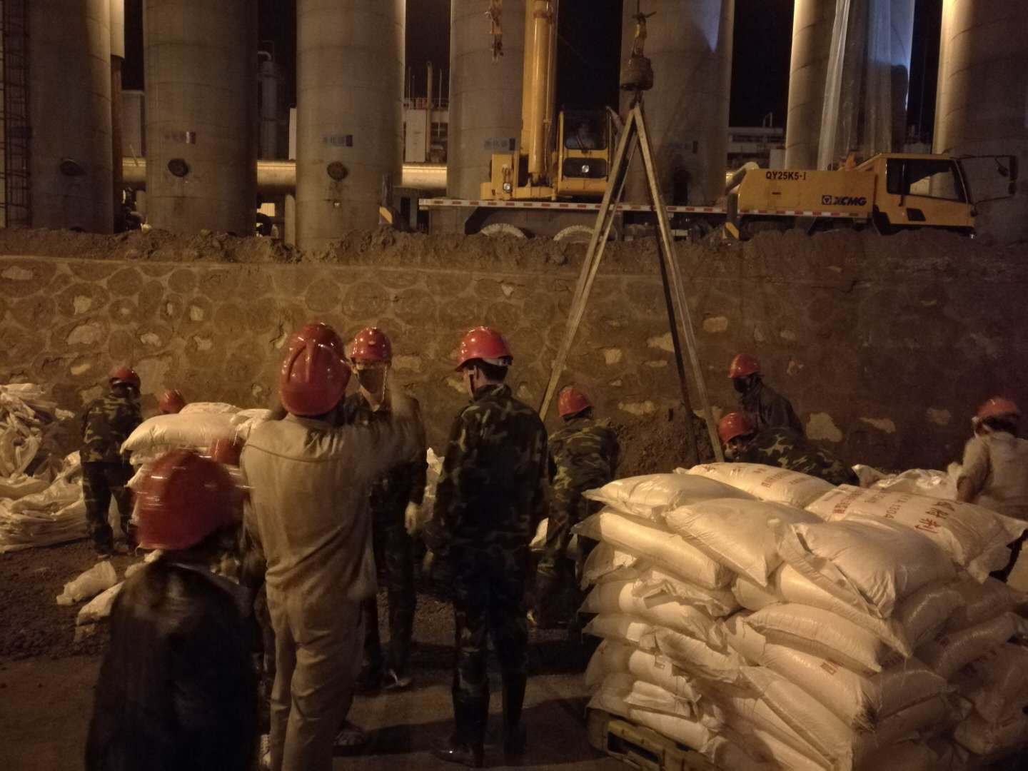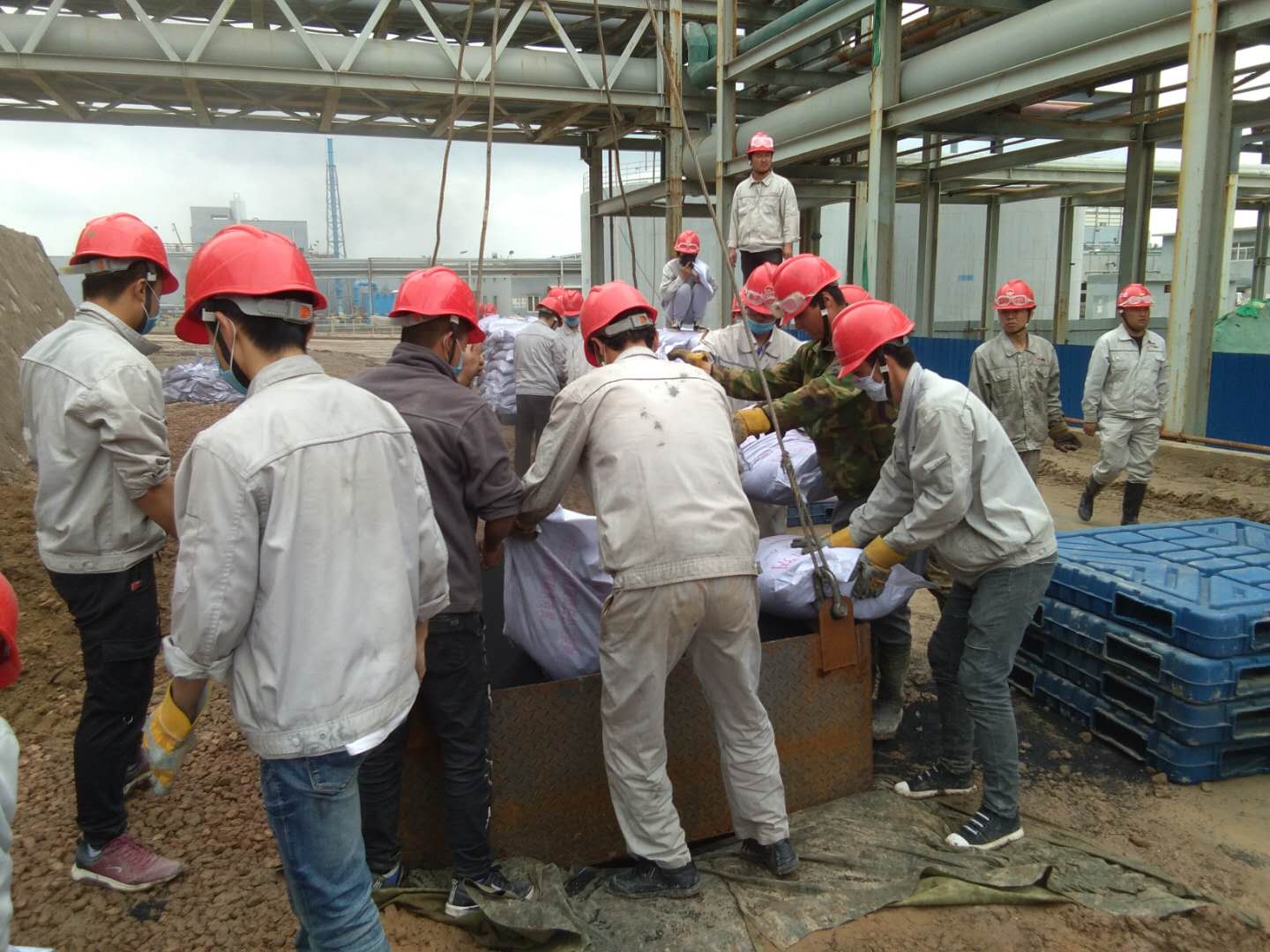 7月4日中午12時,連續(xù)幾天的陰雨天終于暫停,盡管天公不作美,烏云密布,隨時會下雨,但對奮戰(zhàn)在廣拓化工一線的檢修者們來說,雨住了就是最好的消息。因為決定化工系統(tǒng)能否按時開車的關(guān)鍵項目,本次計劃檢修的重頭戲--乙炔干燥更換吸附劑工作終于能開始了!摆s快安排吃飯,抽調(diào)一切力量,13時準時到場協(xié)助檢修,我們要與天氣賽跑,趕在下雨前完成乙炔干燥吸附劑的填充工作。”隨著化工公司總經(jīng)理賈存富的一聲令下,各裝置、科室應(yīng)聲而動,積極組織人員參與到檢修工作中,一場與天氣賽跑的搶修大戲開始了……