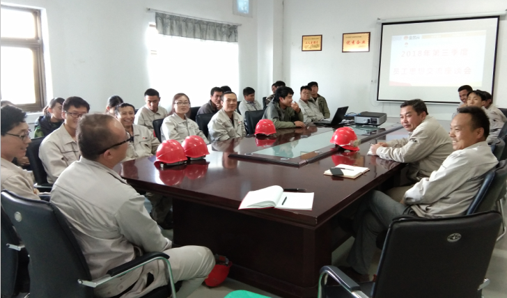 為了充分了解員工的思想動態(tài),征詢廣大職工意見和建議,幫助員工解決工作和生活中的實際困難,加強員工隊伍建設,體現公司以人為本的管理理念,促進企業(yè)更加健康、和諧發(fā)展,寧夏興昊永勝鹽業(yè)科技有限公司于10月10日組織召開了2018年第三季度員工思想交流座談會。會議由鹽業(yè)公司總經理尚繼榮同志主持,鹽業(yè)公司黨支部副書記王志杰、綜合科科長張偉及職工代表列席參加會議。
