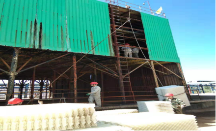冷卻塔填料更換已然不是之前直接性的你接我送,而是利用滑輪與繩索進(jìn)行起吊,不僅大大的提高了工作效率,一眼望去也簡(jiǎn)單了許多,這是大家齊心協(xié)力,在實(shí)踐中摸索出來(lái)的智慧與力量。
