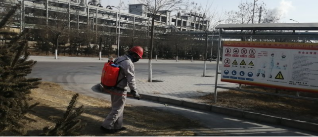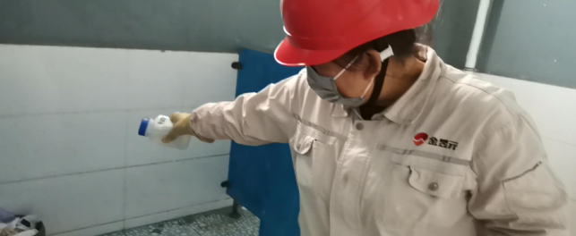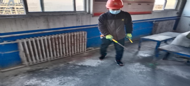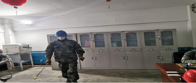 對(duì)廠區(qū)衛(wèi)生間消毒。
