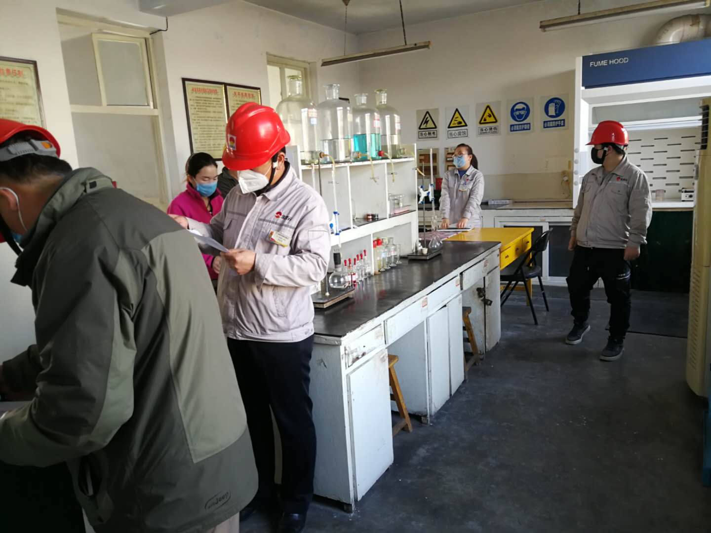 每到一個裝置,檢查人員都會詳細的詢問人員測溫情況以及辦公用品的消毒情況。王總強調(diào):“一定要嚴格執(zhí)行各項防疫規(guī)定,杜絕疫情蔓延途徑,保障員工安全”。從南大門到原料裝置,從電石爐到化驗室,從成品裝置到生料裝置,檢查人員的腳步踏遍了資源再生公司的每一個值班室和辦公室,真正無死角的對疫情防控工作做了檢查。