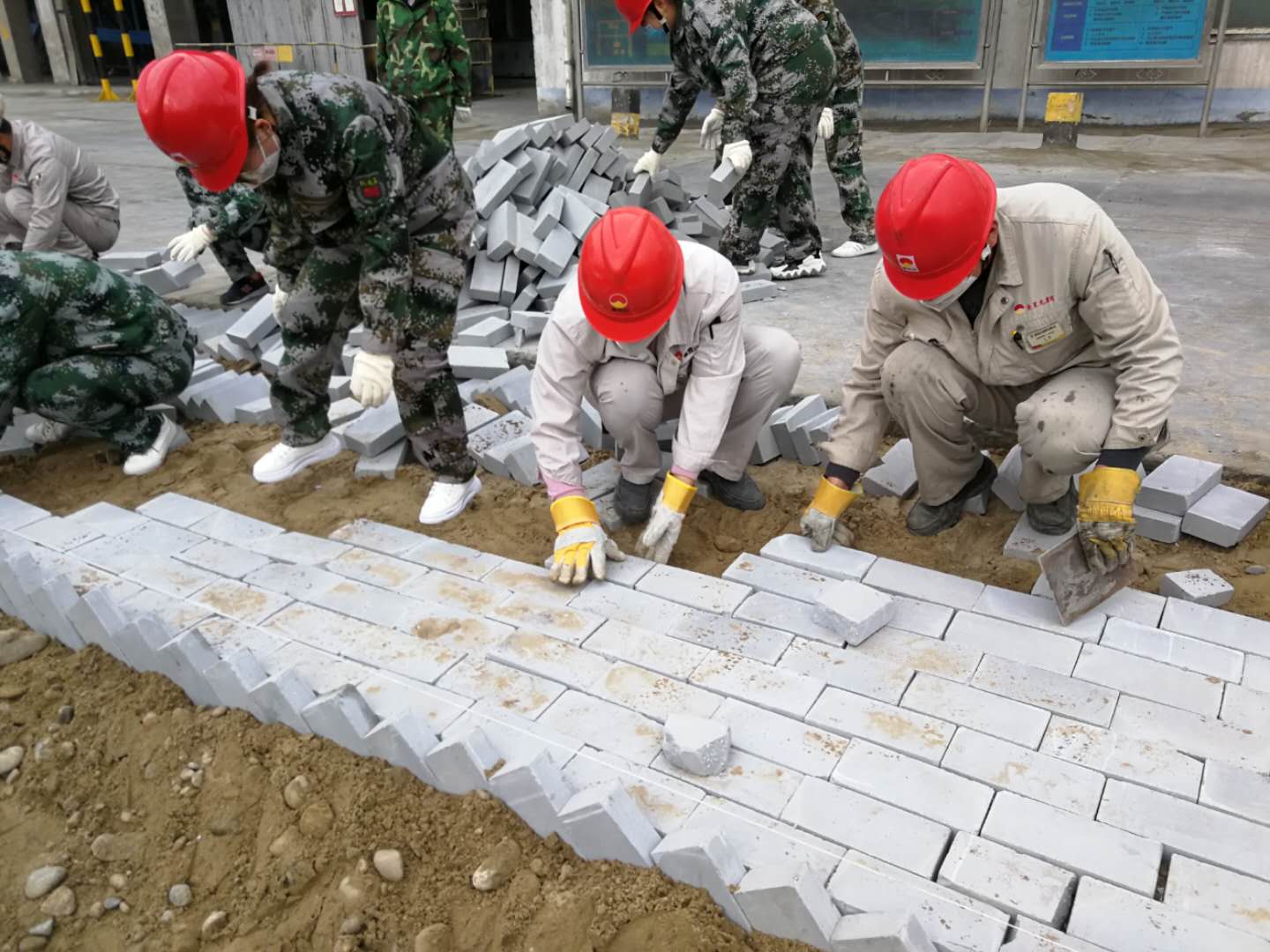 3月23日早上8:30分,資源再生公司組織所有日勤人員到成品裝置東側(cè)綠化帶內(nèi)勞動(dòng)。說是勞動(dòng),其實(shí)就是用青磚將綠化帶旁邊多余的土地鋪成平整的小路。雖然大家不是專業(yè)的泥瓦匠,也沒有專業(yè)的工具,但大家想方設(shè)法將青磚鋪的平整而又美麗。說說笑笑中手下的工作一點(diǎn)兒也沒有落下。時(shí)間在忙碌中悄悄溜走,大約一個(gè)小時(shí),原來的沙土地變成了平整的磚地,遠(yuǎn)遠(yuǎn)看去,青磚鋪成的小路干凈而又整齊。