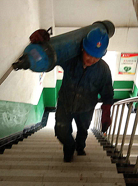 這邊沒有氧氣了,瘦一點的同事扛不動氧氣瓶,維修班的袁文二話不說,一把扛到肩上就走了,他的拼搏與擔(dān)當(dāng)在一層層樓梯上、在他沉重的腳步中無限延伸……再一次延伸出那“團結(jié)、拼搏、求實、創(chuàng)新”的優(yōu)秀品格和文化內(nèi)涵。