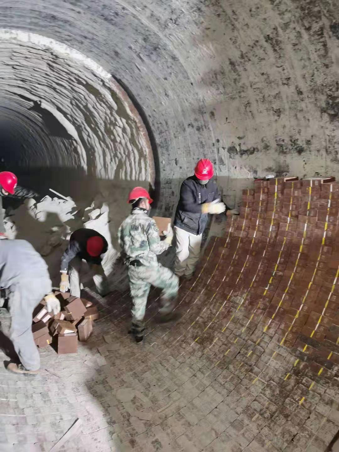 入窯鉸刀更換結(jié)束后,幾名維修工再一次細(xì)致的對(duì)鉸刀附屬設(shè)備進(jìn)行檢查,確;剞D(zhuǎn)窯開啟后入窯鉸刀能夠長(zhǎng)周期穩(wěn)定運(yùn)行。回轉(zhuǎn)窯內(nèi),平時(shí)的崗位巡檢操作工變身砌磚師傅,對(duì)窯磚進(jìn)行砌筑。大家配合默契,像極了從事砌磚行業(yè)多年的老師傅。窯頭平臺(tái)上,頂著寒風(fēng)搬磚的是各裝置協(xié)調(diào)的員工。一方有難八方支援,不管回轉(zhuǎn)窯還是電石爐,都是資源再生公司的設(shè)備。哪兒檢修,其他裝置馬上協(xié)調(diào)人員配合。一次檢修就是一次考驗(yàn),不僅要保安全保進(jìn)度,還要保證檢修質(zhì)量。各級(jí)管理人員在保證安全的前提下對(duì)窯磚砌筑質(zhì)量進(jìn)行檢查,確保檢修質(zhì)量。