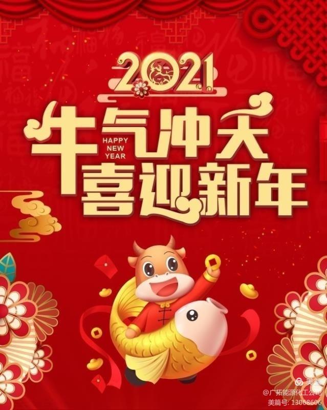 金牛奮蹄開(kāi)錦繡,牛耕年豐又一春。值此農(nóng)歷辛丑牛年到來(lái)之際,廣拓化工公司總經(jīng)理賈存富攜公司領(lǐng)導(dǎo)班子向全體員工和給予化工公司鼎力支持的各級(jí)領(lǐng)導(dǎo)、朋友致以衷心的感謝和良好祝愿,祝大家在新的一年里牛氣沖天,身心健康,萬(wàn)事如意!