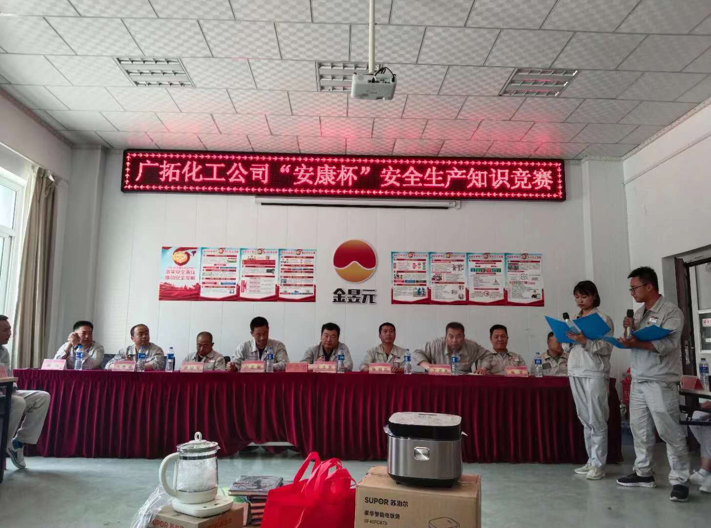 今年是全國第20個安全生產(chǎn)月,根據(jù)集團公司《關(guān)于開展“安全生產(chǎn)月”活動的通知》的文件精神,6月初,廣拓化工公司積極開展“落實安全責任,推動安全發(fā)展”為主題的安全生產(chǎn)月活動。制定了可行的活動方案,精心組織、全面部署、認真落實、注重實效,以宣傳國家有關(guān)安全生產(chǎn)法律法規(guī)、安全生產(chǎn)知識、公司安全生產(chǎn)管理制度,增強全體員工的安全意識和防范事故的能力為重點。各單位積極開展形式多樣、內(nèi)容豐富的安全活動,加大隱患排查治理力度,通過集中開展一系列安全生產(chǎn)宣傳教育活動,轉(zhuǎn)化為落實安全生產(chǎn)責任的自覺行動,確保公司安全生產(chǎn)形勢持續(xù)穩(wěn)定向好,為慶祝建黨100周年、金昱元建廠30周年營造良好的安全環(huán)境。
