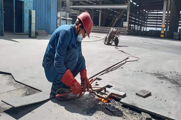 炎熱的成品庫旁,他們正在安裝區(qū)域防護(hù)網(wǎng)。測(cè)量、打眼、安裝、緊螺絲,每一個(gè)細(xì)節(jié)都不能馬虎大意,雖頂著烈日,他們干工作有條不紊,仔細(xì)規(guī)劃著距離,精心安裝每一扇防護(hù)墻。相較于爐面高溫檢修,此刻的溫度,他們耐得住、經(jīng)得住。是的,他們已是千錘百煉,經(jīng)得起這“火”的考驗(yàn)。