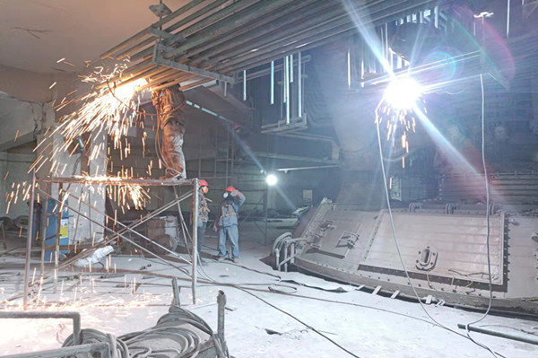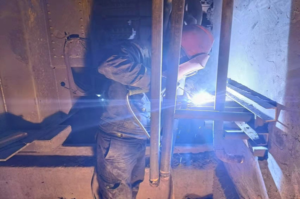 在檢修現(xiàn)場,我們的檢修工人身系安全帶,手拿焊鉗,蹲在狹小的空間,焊接水管,耗時耗力,唯有飛濺如麥穗的焊花展現(xiàn)著他們的顏色,魚骨似的焊縫是他們驕傲的成果。同時在檢修過程中也伴隨著灰塵飛揚和各種安全隱患,但在我們檢修工人的臉上沒有看見沮喪的表情,看到的是檢修工人汗水浸透的后背,沒有休憩,只有投入;看到的是檢修工人一張張布滿灰塵的臉頰,沒有怨言,只有投入。在這里你可以看到那一個個無比堅毅的目光,感受到他們內(nèi)心滿滿的自信和他們愛崗敬業(yè)、無私奉獻、不畏艱辛的精神;他們攜手共進、分工合理、工作有序,只為創(chuàng)造安全的檢修環(huán)境;他們?yōu)樘崆巴瓿蓹z修任務加班到深夜,工作時間長、工作量大,不辭辛勞,沒有任何怨言,充分展現(xiàn)了“團結、拼搏”的企業(yè)精神。