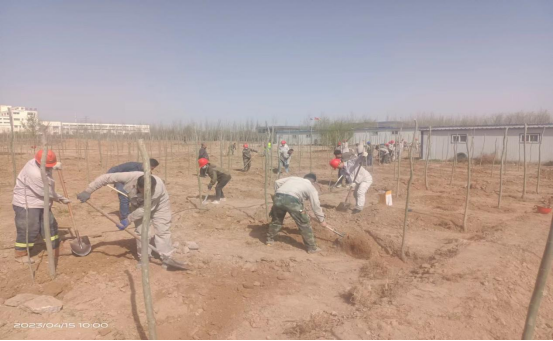 公司每年的春季都會制定本年度的環(huán)保節(jié)能目標(biāo),對廠區(qū)內(nèi)的綠化設(shè)施進(jìn)行完善,加大綠化面積,組織一年一度的植樹活動。由于公司主要是生產(chǎn)建筑材料的,以普通硅酸鹽水泥和水泥原材料熟料為主的化工企業(yè),必不可少的廠區(qū)硬化占到了一定的面積,導(dǎo)致綠化覆蓋率較少。但是就是這樣的條件下,公司領(lǐng)導(dǎo)還是在有限的廠區(qū)綠化面積里盡可能的多種樹,改善員工的工作生產(chǎn)環(huán)境,保護(hù)環(huán)境衛(wèi)生。公司領(lǐng)導(dǎo)組織員工在原料堆廠的邊上再種一排楊樹,由于原料廠邊上常年受運(yùn)輸車輛的碾壓,地質(zhì)堅硬,鐵鍬等普通挖土工具挖土困難,導(dǎo)致種樹進(jìn)度緩慢。于是公司領(lǐng)導(dǎo)就協(xié)調(diào)安排了挖掘機(jī)進(jìn)行挖樹坑,挖好了樹坑,就安排各裝置對于各自區(qū)域的樹苗進(jìn)行移栽,經(jīng)過大家的齊心協(xié)力,樹苗都被小心翼翼的放到了新挖的樹坑里,你扶樹苗,我埋土,好不熱鬧,在大家共同努力下一排整齊的樹苗矗立在原料堆場的邊上。守護(hù)著這邊我們?yōu)橹畩^斗的熱土。