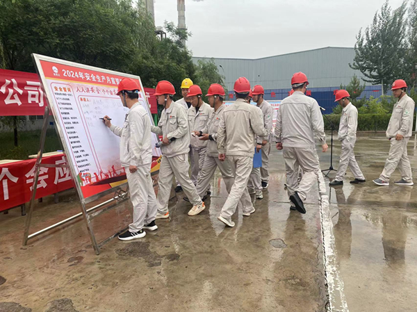 2024年5月29日上午,興昊永勝鹽業(yè)公司組織開(kāi)展了“安全生產(chǎn)月”啟動(dòng)儀式。啟動(dòng)儀式上,各裝置長(zhǎng)和勞務(wù)外包負(fù)責(zé)人分別作了表態(tài)發(fā)言,主管副經(jīng)理帶領(lǐng)大家做了安全宣誓,總經(jīng)理尚繼榮同志帶領(lǐng)每一位員工鄭重的在安全承諾簽字版上寫(xiě)下了自己姓名。各裝置長(zhǎng)和勞務(wù)外包負(fù)責(zé)人承諾:“他們會(huì)帶領(lǐng)部門(mén)員工,牢固樹(shù)立安全紅線(xiàn)意識(shí),認(rèn)真履職崗位職責(zé),嚴(yán)格遵守公司規(guī)章制度,深入排查治理各類(lèi)安全隱患,杜絕違章和安全生產(chǎn)事故發(fā)生”。