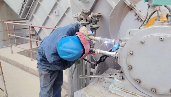隨著一聲清脆的哨響,檢修工作正式拉開帷幕。焊工老李戴著防護面罩,手持焊槍,在水泥磨的縫隙間穿梭;」忾W爍,焊花飛濺,如同一朵朵金色的煙花在黑暗中綻放,他全神貫注地修補著磨體上的裂痕,每一個焊點都凝結(jié)著他的精湛技藝;鉗工師傅們則圍著球磨機,像一群經(jīng)驗豐富的“外科醫(yī)生”,小心翼翼地拆卸下磨損的部件。扳手與螺栓碰撞發(fā)出的叮當聲,與拆卸設(shè)備時的摩擦聲交織在一起,奏響了一曲獨特的工業(yè)樂章。