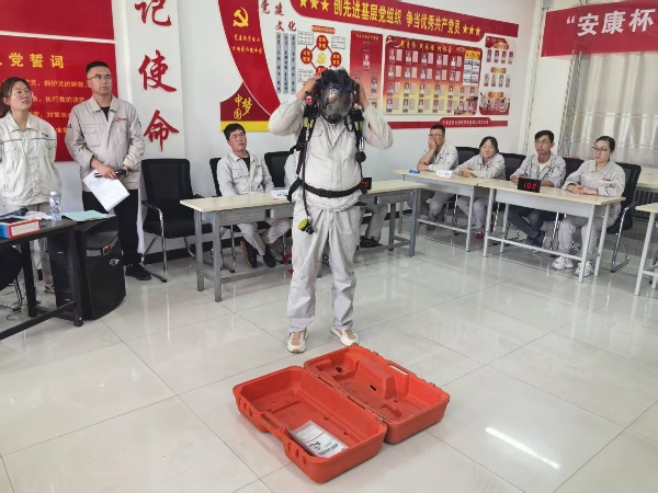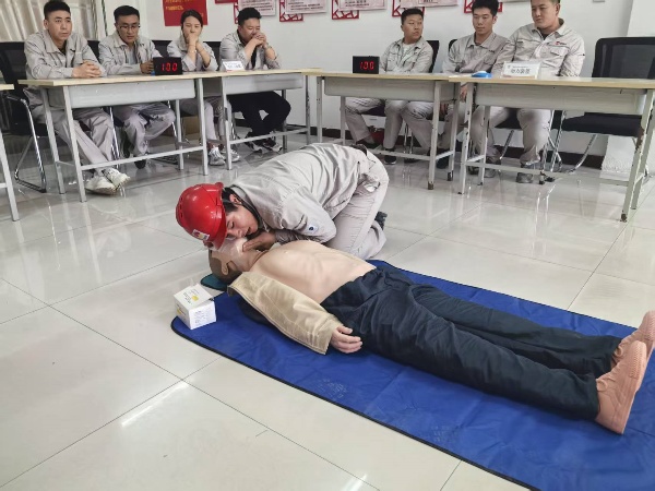 比賽現(xiàn)場,參賽隊(duì)員們個(gè)個(gè)精神抖擻、斗志昂揚(yáng)!靶姆螐(fù)蘇操作”“正壓式空氣呼吸器穿戴”兩個(gè)項(xiàng)目,選手們爭分奪秒?yún)s有條不紊:檢查患者意識(shí)和呼吸、檢查氣瓶壓力、調(diào)整背帶松緊、佩戴面罩并測試氣密性……一套流程行云流水,展現(xiàn)出扎實(shí)的技能功底與高度的安全意識(shí);顒(dòng)現(xiàn)場,公司安全總監(jiān)鐵旭東、安全主管何寧、海什全程監(jiān)督評分,并針對操作細(xì)節(jié)進(jìn)行實(shí)時(shí)監(jiān)控,將比賽轉(zhuǎn)化為安全培訓(xùn)課堂,達(dá)到競賽和培訓(xùn)相結(jié)合。參賽職工紛紛表示,通過比武不僅提升了應(yīng)急處置能力,更深刻體會(huì)到規(guī)范操作的重要性。
