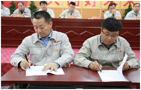 為了進一步明確權責,強化各級管理人員的責任意識,提高履職能力,會上,集團公司各級主管領導簽訂了《2019年經(jīng)營管理目標責任書》和《2019年安全環(huán)保目標責任書》。
