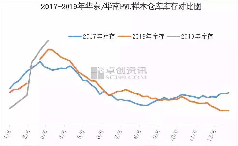 近期中美貿(mào)關(guān)系緩和、制造業(yè)等行業(yè)增值稅下降、后期需求繼續(xù)恢復(fù)加上春季檢修等因素支撐,PVC期貨雖然還是區(qū)間震蕩,但表現(xiàn)相對偏強(qiáng),參與者看多情緒增加。相較于期貨而言,受制于高庫存的壓制,現(xiàn)貨走強(qiáng)的過程相對緩慢,所以前期給了套保商和期現(xiàn)套利商較多的操作空間。所以,居高不下的庫存背后,我們或許不應(yīng)該單純關(guān)注絕對值,下面主要分析需要關(guān)注的其它點?