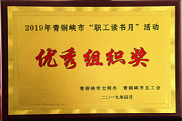 集團(tuán)公司工會取得優(yōu)異成績,榮獲2019年青銅峽市“職工讀書月”活動優(yōu)秀組織獎。