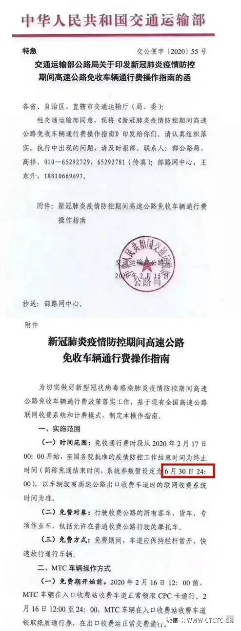 交通部門(mén),根據(jù)疫情防控需要,經(jīng)國(guó)務(wù)院同意,從2月17日0時(shí)起至疫情防控工作結(jié)束,所有依法通行收費(fèi)公路的車(chē)輛免收通行費(fèi)。