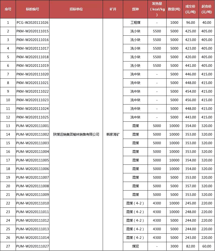 一、韓家灣煤礦產(chǎn)品信息(最新價格)