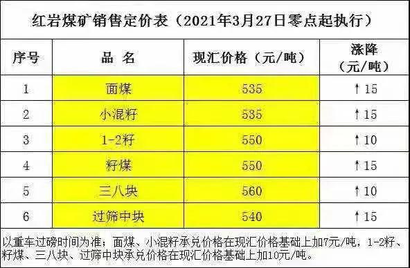 2021年3月28日早7點大砭窯煤礦:面煤漲80元,所有塊煤漲價40元。