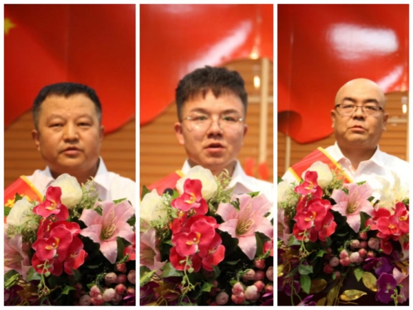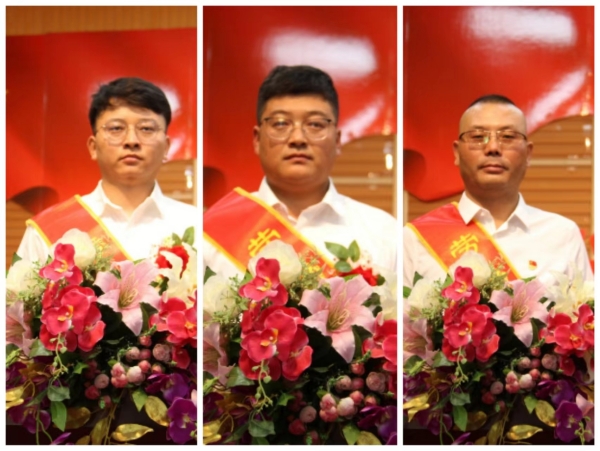 勞動模范:左:資源循環(huán)公司 席文童;中:廣拓能源公司 麻玉龍;右:炔烴節(jié)能公司 金學(xué)鋒
