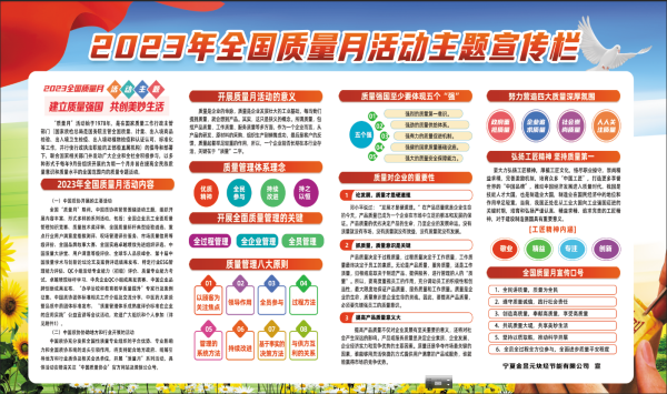 今年 9 月份是全國(guó)第 46個(gè)“質(zhì)量月”,為深入貫徹習(xí)近平新時(shí)代中國(guó)特色社會(huì)主義思想,全面貫徹落實(shí)黨的二十大精神,夯實(shí)質(zhì)量基礎(chǔ),營(yíng)造重視質(zhì)量良好氣氛,引導(dǎo)和發(fā)動(dòng)廣大員工增強(qiáng)質(zhì)量意識(shí),積極參與“質(zhì)量月”活動(dòng),推動(dòng)企業(yè)又好又快發(fā)展,寧夏金昱元化工集團(tuán)股份有限公司組織開(kāi)展“質(zhì)量月”活動(dòng)。