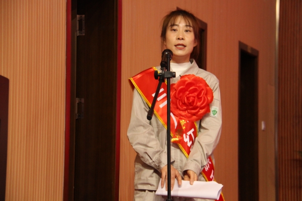 女職工代表?xiàng)钴饺匕l(fā)言。她向集團(tuán)公司對廣大女職工們的關(guān)愛表示衷心的感謝,為企業(yè)給她們提供實(shí)現(xiàn)自身價(jià)值的廣闊平臺(tái)表示誠摯的謝意。她號召全體女職工共同努力,勇挑重?fù)?dān)、務(wù)實(shí)苦干,為開創(chuàng)金昱元更加輝煌燦爛的明天踔厲奮發(fā)、不斷前行。