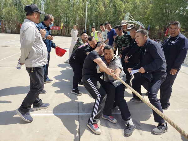 在拔河比賽現(xiàn)場,隨著裁判一聲令下,比賽迎來激動人心的時刻。比賽雙方隊員前腿瞪、后腿弓,凝神聚力,“一二,一二”的口號聲震耳欲聾,漲紅的臉頰、暴突的青筋,彰顯雙方激烈對峙,互不相讓的競技狀態(tài)。