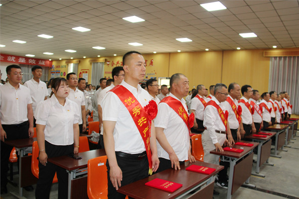 在中國共產(chǎn)黨建黨節(jié)到來之際,6月27日,寧夏金昱元化工集團股份有限公司召開慶祝中國共產(chǎn)黨成立104周年暨表彰大會。
